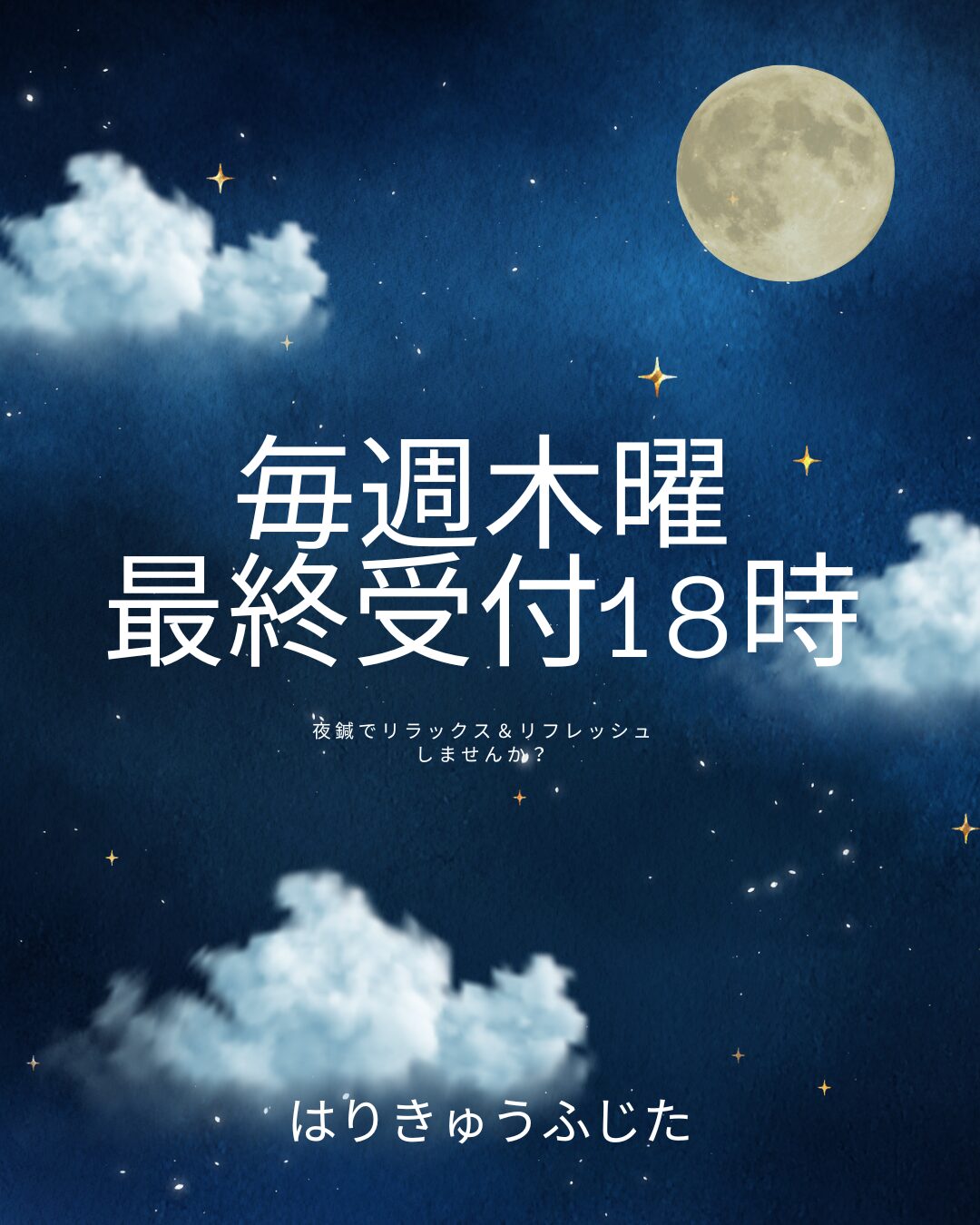 毎週木曜日、普段は15時半までの受付の全身鍼治療コースも、全身鍼治療+美容鍼コースも、最終受付が18時となります✨